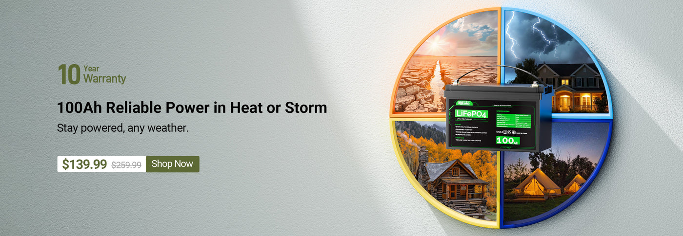 12V 100Ah Lithium Iron Phosphate LiFePO4 Battery with LED Display - 100ah battery with LED Display is backordered and will ship as soon as it is back in stock.