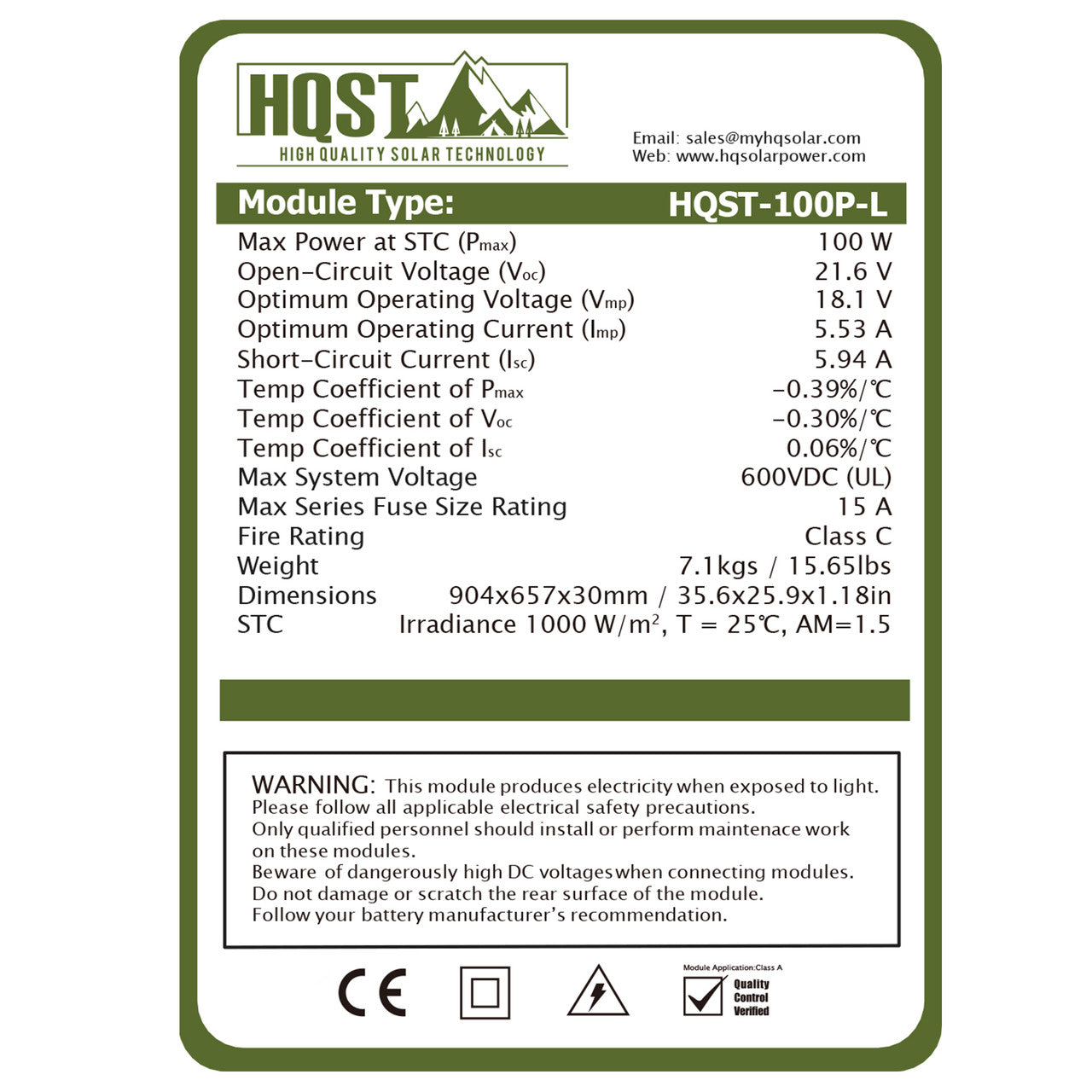 Max Power at STC ( Pmax ): 100W