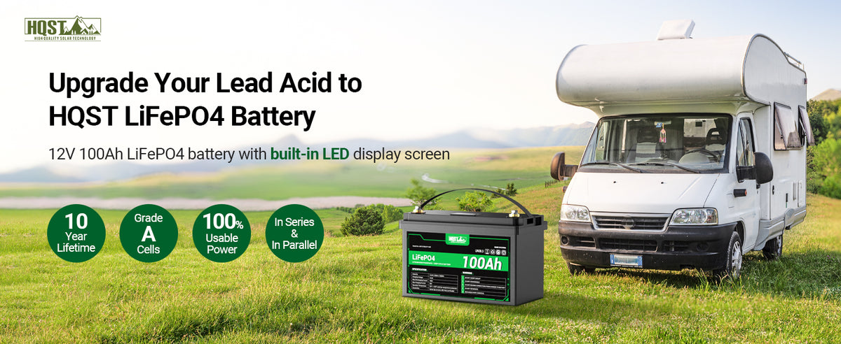 HQST 12V 100Ah Lithium Iron Phosphate LiFePO4 Battery with LED Display *2