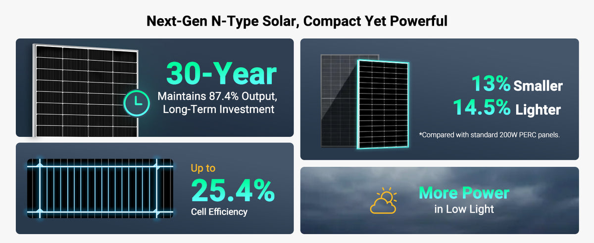 HQST 200W Compact N-Type Solar Panel | 25.4% Efficiency, 14.5% Lighter