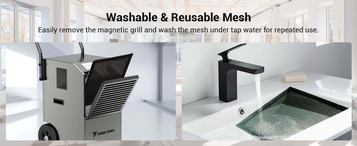 - 【Easy to Use & Maintain】This commercial dehumidifier features a digital display that shows real-time moisture levels for easy monitoring. The magnetic grill can be easily detached, allowing you to remove the interior mesh and wash it under tap water for repeated use. Additionally, it offers auto defrost and memory start functions in case of accidental power outages, adding more convenience to your dehumidification needs.