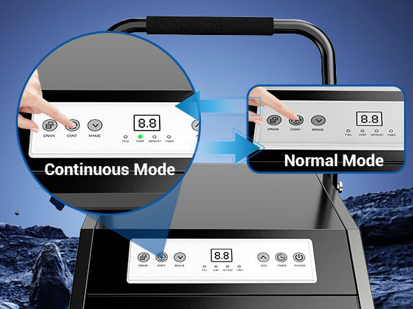 - 【Built-in Pump for Easy Drainage】Our large dehumidifier supports both gravity and pump drainage, making water removal hassle-free. The built-in condensate pump can lift water up to 16.4 ft (5m), allowing for flexible placement and drainage. For gravity drainage, simply attach the included hose, and the water will continuously drain on its own. Alternatively, you can press the "DRAIN" button for forced drainage.