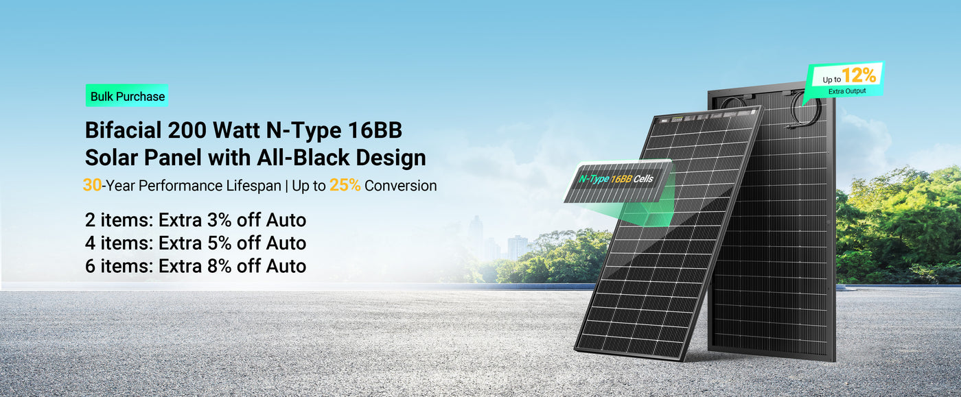 HQST Bifacial 200W N-Type 16BB Monocrystalline Solar Panel with All-Black Design